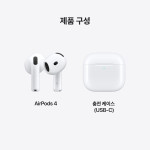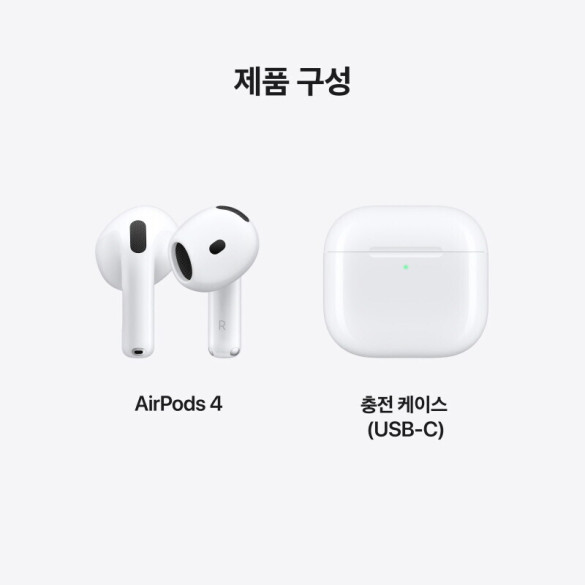 AirPods 4 제품 구성에는 USB-C 충전 케이블 및 전원 어댑터가 포함되지 않습니다.